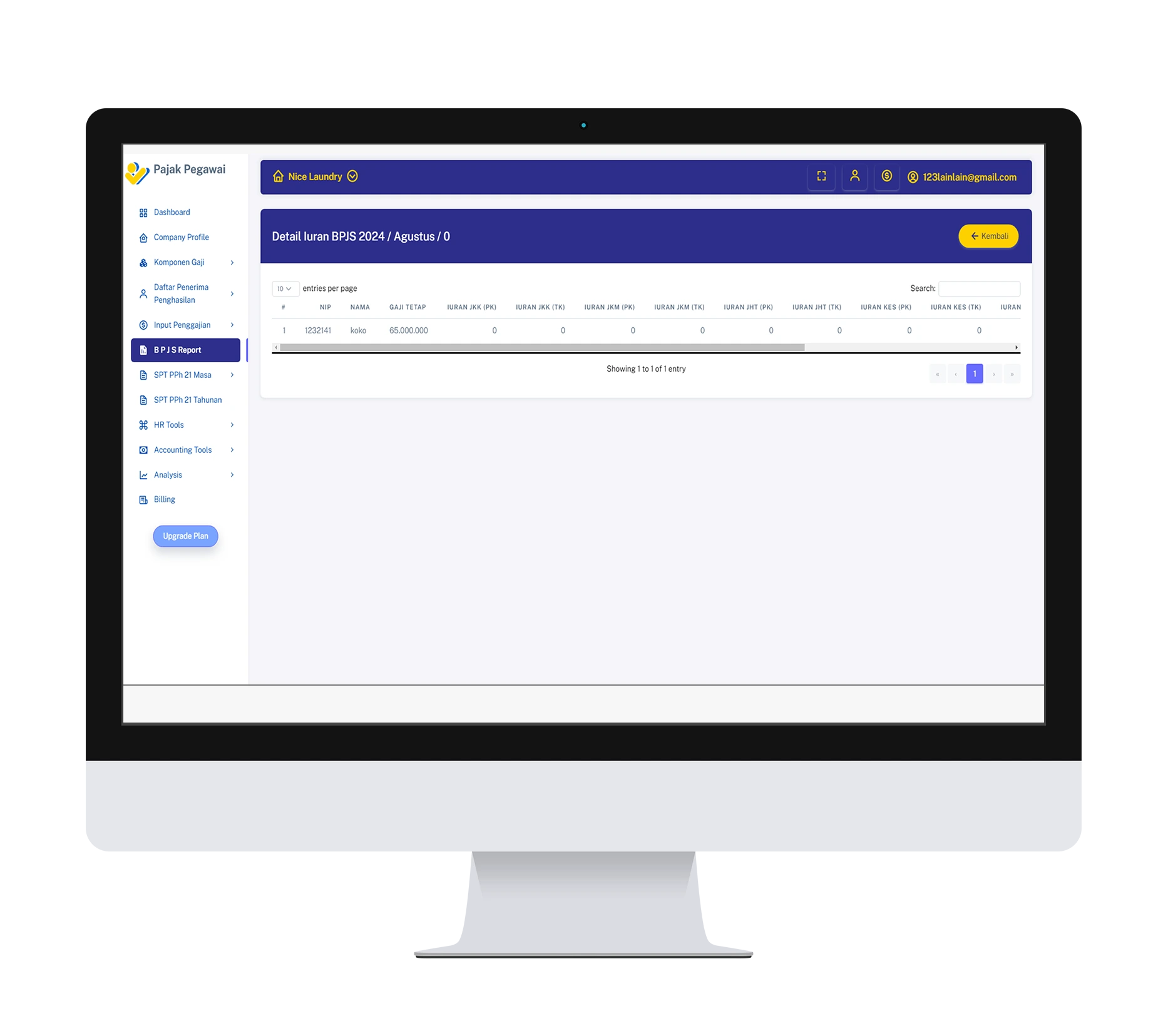Laporan iuran BPJS yang dibayar oleh perusahaan bulanan.