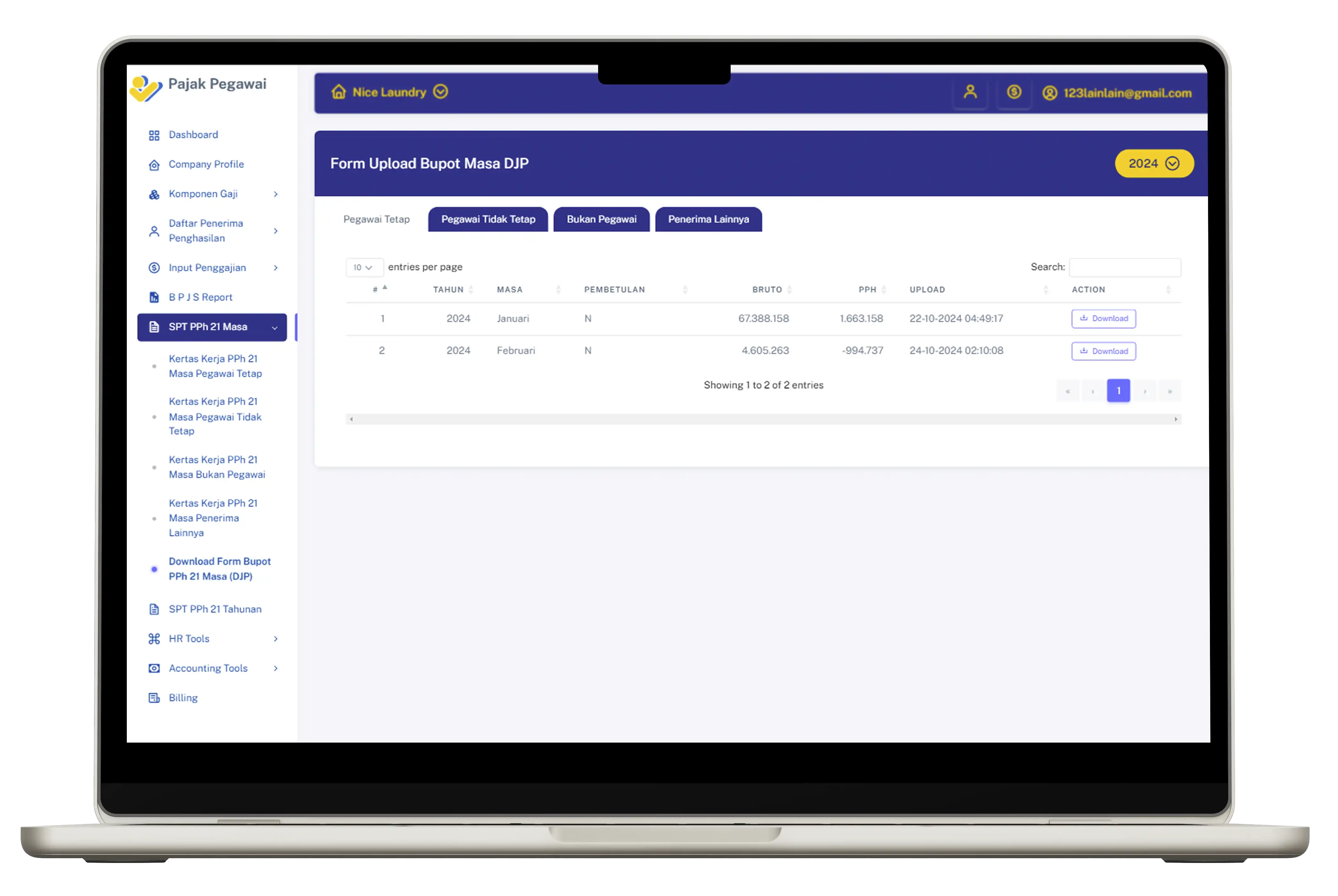Menyediakan laporan akuntansi sesuai periode yang diinginkan dan dapat di unduh.