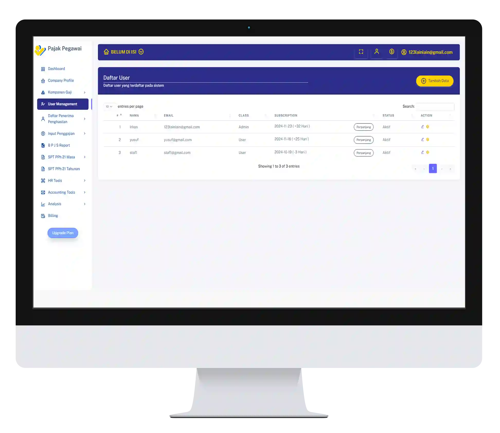 Pajak Pegawai dapat diakses oleh banyak pengguna sekaligus tanpa gangguan data.
