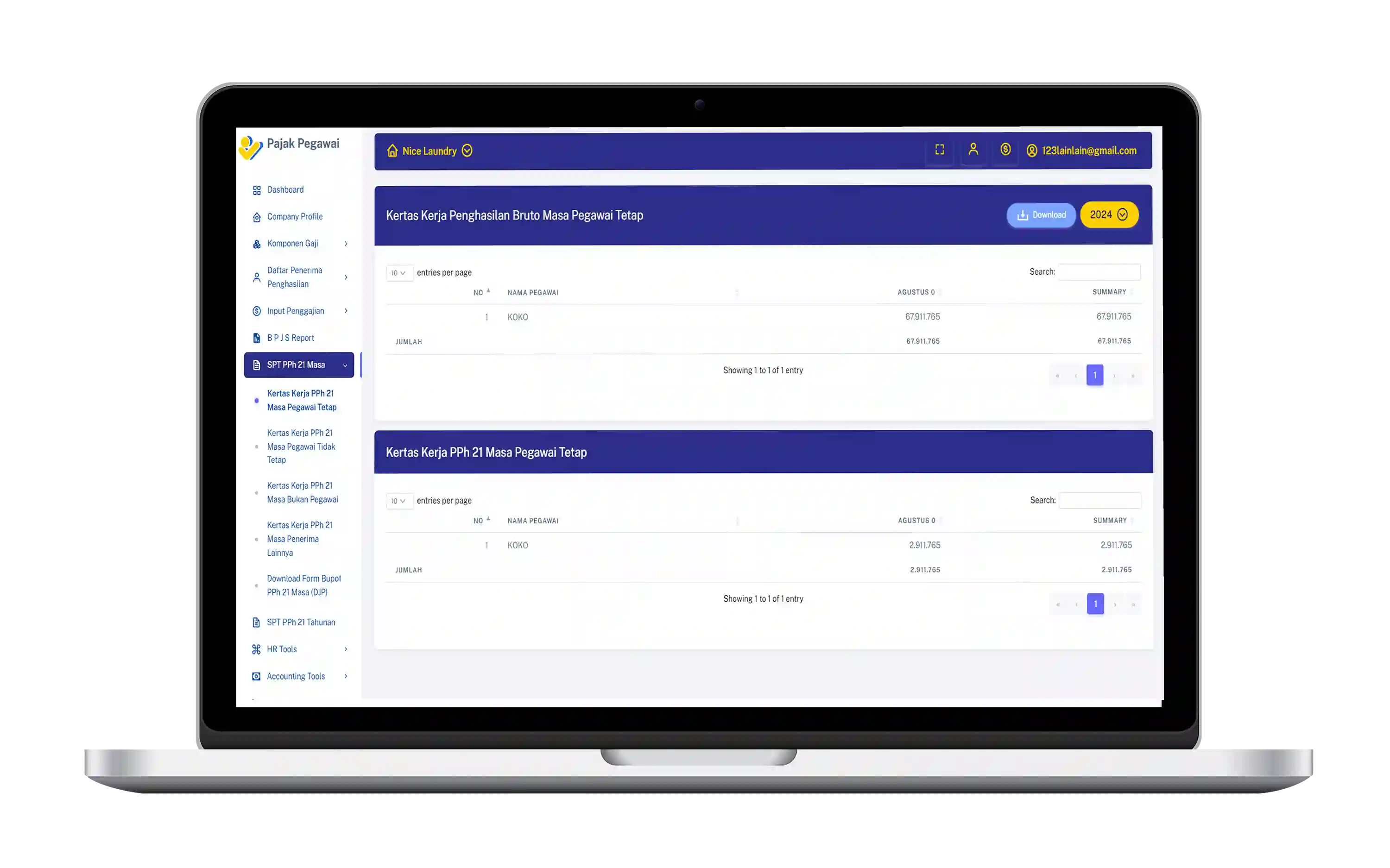 Menyediakan kertas kerja perhitungan PPh 21 bulanan yang dapat digunakan untuk penyusunan SPT PPh 21 masa.
